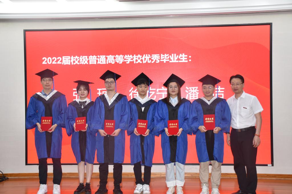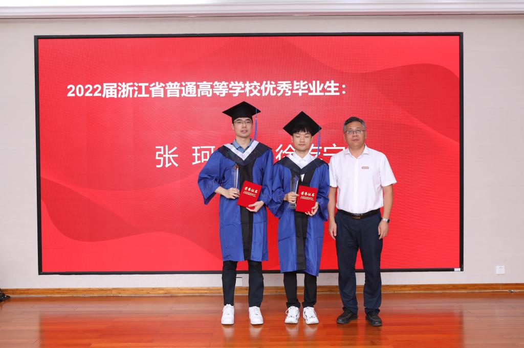 柳国庆为获得2022届浙江省普通高等学校优秀毕业生同学颁奖。