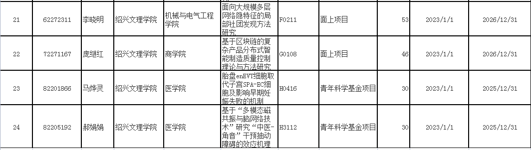 2022年度国家自然科学基金项目评审结果揭晓, 根据国家自然科学基金委发布的《关于公布2022年度国家自然科学基金申请项目评审结果的通告》(https://www.nsfc.gov.cn/publish/portal0/tab434/info87195.htm), 我校获批主持24项,立项数创学校历史新高。其中面上项目9项、青年科学基金项目15项,资助直接费用总额930万元。立项项目学院分布情况:生命科学学院8项、土木工程学院5项、化学化工学院3项、机械与电气工程学院3项、数理信息学院2项、医学院2项、商学院1项。