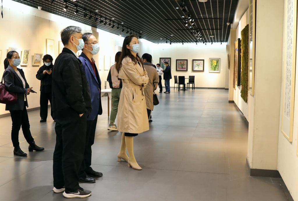音乐会开始前,嘉宾们参观了“艺术学院美术系教师暨越城优秀校友美术作品展”。本次展览共展出美术系教师及越城区优秀校友的中国画、油画、漆画、综合材料、书法等形式的美术作品100余幅,作品形式各异、风格不同、题材丰富、类型多样,与音乐会传达出一个共同的主题——脚踏坚实的大地、放飞梦想的翅膀,以薪火相传的节奏编织时代交响,奏响奋进新征程的华美乐章。