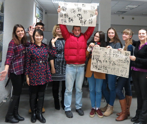 2012级学生陈颖在俄罗斯陶里亚蒂国立大学进行汉语国际教学