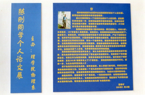 学院实施个性化培养,激发学生的科研兴趣和创造力,使学生走上科研之路。图为学院2001年为在校本科生陈刚成功举办个人论文展。