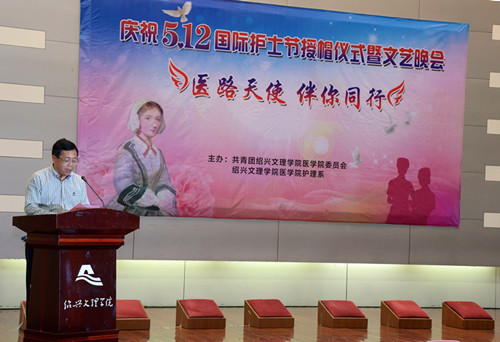 5月10日,我校庆祝5•12国际护士节授帽仪式暨“医路天使 与你同行”主题文艺晚会在铁城科教馆报告厅隆重举行。校党委委员、医学院党委书记柳国庆,校学工部、校团委、医学院相关负责人,以及2014级全体护生出席授帽仪式。