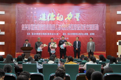 “让我们每一个人都都成为宣讲员,一传十,十传百的把道德模范事迹分享出去,让更多人的心灵为之震撼……”4月7日下午,由绍兴市文明办主办,我校马克思主义学院、法学院承办的“道德的力量”绍兴市道德模范和身边好人先进事迹首场基层巡讲暨现场交流活动在南山校区7号楼报告厅举行。第四届绍兴市道德模范范立刚、周贤人和第三届绍兴市道德模范潘旗龙参与现场交流。绍兴市委宣传部部务会议成员、市文明办副主任徐人杰,市文明办未成年人思想道德建设工作处处长车东海,我校马克思主义学院、法学院负责人,马克思主义学院、法学院师生代表参加活动。
