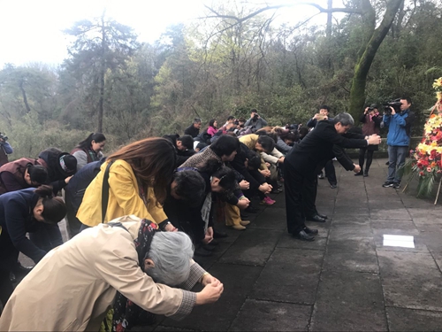 3月31日,在传统清明节到来之际,由日本著名书法家高桥静豪先生率领的日本书道访问团一行12人,以及来自全国各地、各界的阳明心学爱好者数百人前往兰亭花街鲜虾山王阳明墓地参加了由我校越文化研究院与市王阳明研究院联合举办的祭祀阳明先生活动。