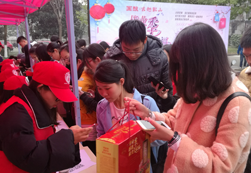 1月4-5日,新年伊始,古越龙山联合我校开展“毕业季、感恩季,最美全家福”第一阶段活动,在南山校区公寓广场进行了为期2天的礼品酒免费赠送公益活动。