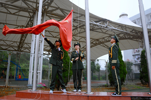 10月1日早晨7点30分,当清晨的阳光洒满校园,我校在南山校区和河东校区组织了升国旗仪式,庆祝祖国母亲67周岁华诞。国旗班的队员迈着整齐的步伐,精神饱满地走向国旗台,伴着国歌,鲜艳的五星红旗冉冉升起,激发了在场每一个人心中的爱国情怀。