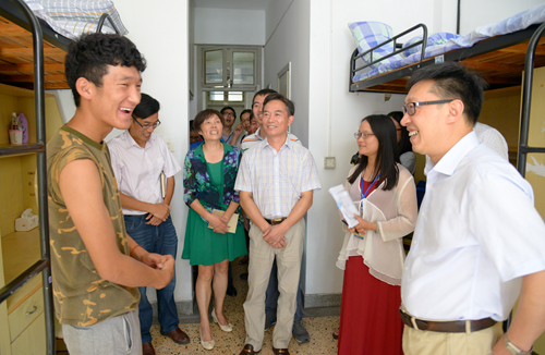 今年我校首次面向西藏自治区招收文理科第一批考生20人。汪俊昌在走访寝室的过程中,特意来到建功书院1幢410室,看望了来自西藏的新生扎西贡宗。汪俊昌详细了解了扎西贡宗的报到和适应情况,欢迎他加入文理大家庭,并听取书院和学院相关负责人关于西藏新生住宿和学习安排,叮嘱其老师和同学要帮助来自西藏的新生们顺利适应在校生活,“学院、书院要大力协同,一起把学生培养成材”。