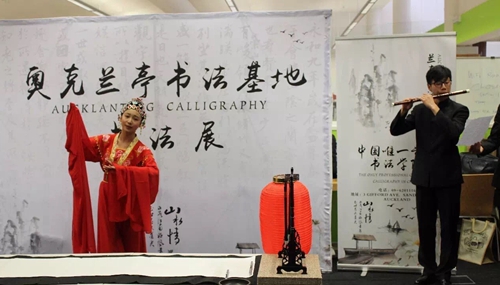 展览当日,新西兰陶波市市长大卫•爵瓦阀斯先生亲自为该市第一个中国书法展开幕致辞。同时,大卫•爵瓦阀斯市长热烈欢迎我校“百人计划”书法团的师生,感谢师生们对此次书法展的辛勤付出。开幕式上,我校师生与陶波市TE KURA O WAITAHANUI小学学生代表开展了生动有趣的书法教学互动以及绍兴传统越剧表演。我校兰亭书法艺术学院苏晓敏老师与陶波市市长大卫•爵瓦阀斯共同泼墨,书写下“绍兴TAUPO”友谊的墨宝。