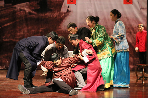 演出结束,何俊杰副部长应邀讲话。他对话剧《家》的成功表演给予祝贺,对演职人员的表演和人文学院今天剧社坚持多年的校园高雅艺术工作给予充分肯定。他提议学校排演“2016纪鲁”大戏,鼓励话剧《家》走出校园,今天剧社走出校园,走向社会,争取为“两美”绍兴建设和社会主义文艺繁荣作出贡献。