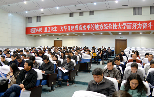 叶飞帆校长强调,2016年是“十三五”的开局之年。学校的各项工作将紧紧围绕“加快推进应用型人才培养体系建设,迎接教育部本科教学工作审核评估”这条主线展开。具体而言,一要扎实推进绍兴大学创建工作,全面提升学校内涵;二要进一步完善学校治理结构,继续深化各项改革;三要强化服务保障,打造“和谐校园”;四要加强行政效能建设,提高管理水平。叶校长号召:“实干兴邦,实干兴校。让我们在学校党委的正确领导下,凝聚全校师生员工的力量和智慧,为早日建成高水平的地方综合性大学而努力奋斗!”
