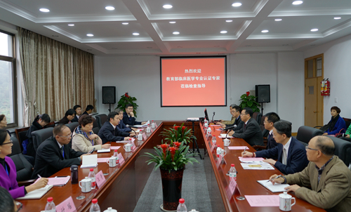 11月23日上午,临床医学专业认证专家组分别召开学校领导、医学院领导、教学工作委员会和督导委员会、行政管理干部、低年级学生座谈会。下午,专家组一行听取基础医学部工作汇报,走访医学实验中心和基础医学部,观摩PBL课程,听课,并召开基础教师座谈会和公卫、人文、公共课教师座谈会。