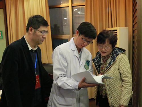 座谈会后,两位专家走访考察了我院社区卫生实践基地——安昌镇卫生院。绍兴市卫计委、柯桥区卫生局、安昌镇卫生院相关领导陪同考察。两位专家实地考察了针灸推拿室、膏药室、自助式健康E站、全科门诊室,并与在此实习的学生亲切交流。两位专家查阅了相关教学资料,听取了安昌镇卫生院的情况介绍,并就基地带教老师的培训和管理、全科医学教学理念、学生与带教老师的互评反馈等问题进行了询问。