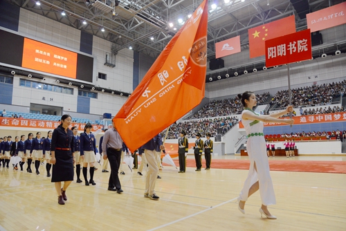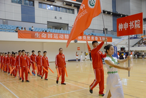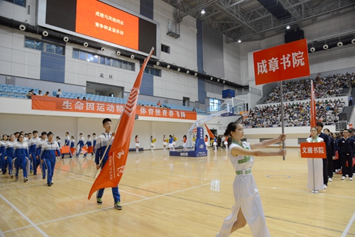 在观看了校党委宣传部为本届运动会创作的专题微电影后,学生代表高举国旗、校旗、会徽,书院、留学生、教职工代表团依次入场。各入场方队极具专业特色和运动精神的展示,以及精心编排的方阵表演赢得观众台上阵阵掌声。今年是我校首次尝试以书院为单位组织参加运动会。入场仪式上,11位书院院长带领着各自书院的运动健儿们,迈着整齐矫健的步伐,喊着铿锵有力的口号,充分展现了书院深厚的文化内涵和当代大学生的青春风采。值得一提的是,今年我校留学生首次组队参赛。在开幕式上,这支由来自美国、墨西哥、韩国等13个国家的留学生组成的代表团引人注目,为此次校运会增光添彩。