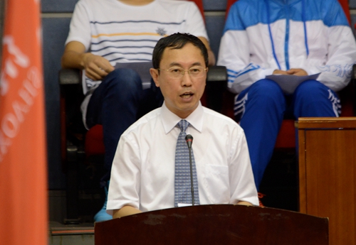 叶校长指出,此次运动会学校有两项创新和改革。一是将以往以学院为单位参加运动会调整为以书院为单位参加,进一步深入推进书院制改革,留学生代表团和教职工代表团的参与,体现学校的多元化,展示融洽的师生关系。二是由以往的单一田径运动会调整为田径比赛加“三大球(足球、篮球、排球)、三小球(乒乓球、羽毛球、网球)”等比赛的综合运动会,并且举办各项赛事的时间将贯穿全年。这项创新举措意味着今后学校运动会的项目将越来越丰富,参与的人数将越来越多,运动会也将越来越精彩。“衷心希望大家走下网络、走出宿舍、走出办公室,走向运动场”,最后,叶校长呼吁广大师生充分利用课余时间,加强体育锻炼,提高身体素质,让群众性体育运动成为学校的新常态。