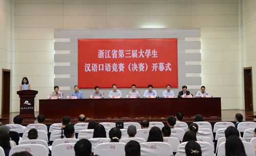 7日下午,浙江省第三届大学生汉语口语竞赛(决赛)开幕式在我校铁城科教馆隆重举行。浙江省教育厅语管处处长王振斌,省教育厅高教处副处长徐光辉,省教育厅宣教处副处长吴振辉,浙江大学颜洽茂教授,我校副校长寿永明教授,校教务处、教育学院等相关负责人和来自全省71所高校的领队及参赛选手一同参加开幕式。开幕式由浙江第二届大学生汉语口语竞赛一等奖获得者、来自我校法学院的杨杭同学主持,