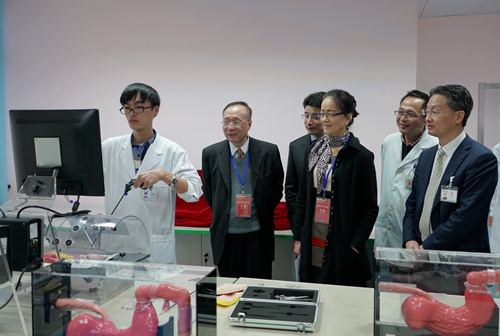 座谈会后,两位专家走访考察了绍兴市妇保院。专家组听取了何炳福院长的工作汇报,并就实习、理论课教学、学生情况、出科考试等问题进行了询问。随后,两位专家考察技能培训中心,走访模拟产房、腔镜实训室、急救技能实训室等相关科室,深入细致地了解临床医学教学情况。