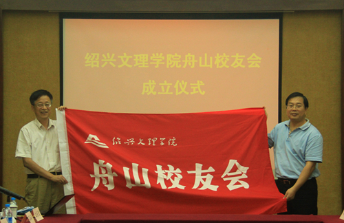仪式由王艳珍校友主持。浙江冠全投资有限公司副总经理刘仲尧校友介绍筹备情况;校友总会顾问、宁波卫生职业技术学院院长任光圆校友到会祝贺并讲话,越城校友会副秘书长、绍兴市文明办副主任茹福军到会祝贺并宣读贺信。会议审议通过《舟山校友会章程》;聘任杨尔昌、裘愉萍担任顾问,选举张友华担任会长,王艳珍为副会长兼秘书长,刘仲尧、郑玉宽、胡成尔为副会长,张邦苏、徐文儿、金双燕为副秘书长。宋培基会长向舟山校友会授旗。