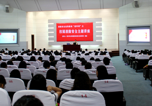 按照我校消防安全宣传教育“进军训”系列活动安排,9月5日晚,市公安消防支队防火处宣传科科长章鑫为我校2014级军训学生做了一堂校园消防安全主题讲座。他详细讲解了校园消防安全知识,就一些常见的火灾事故的预防和火灾逃生应急处理方法作了介绍,向同学们现场演示了干粉灭火器的使用方法,普及了相关消防设施的知识。并指导学生正确拨打119报警电话,就火灾燃烧的5个阶段和应对措施作了说明,并指出正确逃生的4点注意事项。