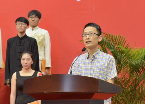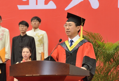 机械与电气工程学院院长沈红卫教授作为教师代表发言。他寄语广大毕业生做一个专业的人,专注自身专业发展,使专业成为自己安身立命之本;做一个有趣的人,真诚待人,认真做事,对成绩低调,对失败坦然,对困难积极,对误解宽容;做一个进步的人,坚守和坚持是最大的力量,相信小进步能积累大成绩,平凡能积累卓越。