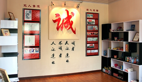 诚信驿站以“给你信任,予我温暖”为主题,完全由学生团队组织策划实施。从方案制定到项目运营全由学生团队运作,学生分工明确,诚信合作,互相监督,设有诚信账本,记录每一天的收支。 2014年6月,我校在阳明书院初次设立“诚信驿站”,在学生中引起了广泛反响。此次河西竞雄书院“诚信驿站”的启动经过大半年的精心策划、设计布置,不管在驿站面积、自助功能,还是文化内容上都有了很大的提升。一进“诚信驿站”,就可以看见大大的“诚”字,灯光照耀下格外醒目。“诚”的左右两边通过电影胶片形式简要回顾了我校1994年开始的无人售报和1997年开始爱心承诺的活动起源和发展,突显了“诚信文化”是我校一直以来的优良传统。