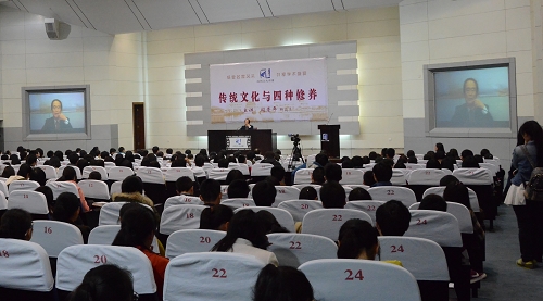 阎崇年教授选择儒家文化里的一个片段——“修养”切入,将其分为四个部分:修身、修心、修学、修行,一一细说,声情并茂。对于“修身”,阎教授把人生划分成三个阶段:基本学习、工作、做自己想做的事业,号召青年学生做“会吃饭,会睡觉”的健康人。对于“修心”,心即心灵,阎教授以中东国家阿曼“路不拾遗,夜不闭户”的和谐画面强调心灵健康的必要性,指出应关注随着经济发展而来的社会失德问题。对于“修学”,现在是个学习型的社会,每个人都要终身学习,持之以恒。大学生不仅要学好专业知识,更需要多阅读一些非本专业但能提高素养的书籍。对于“修行”,阎教授对言行不一、眼高手低的现象给予批评,提出我们应该言行合一,行重于言。在处事中,要做到心静,戒骄戒躁。