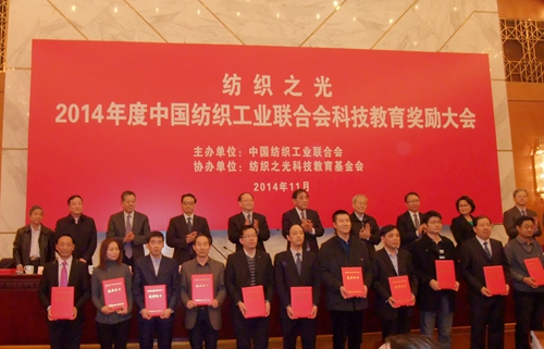 11月25日,“纺织之光”2014年度中国纺织工业联合会科学技术进步奖励大会在北京人民大会堂召开,由我校纺织服装学院刘越教授主持,绍兴市云翔化纤有限公司、浙江红绿蓝纺织印染有限公司、浙江越隆控股集团有限公司共同参与研发的“低温可染异型中空聚酯纤维关键技术及其产业化”项目荣获科技进步二等奖。