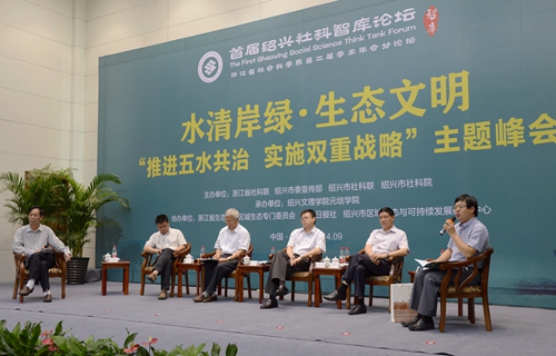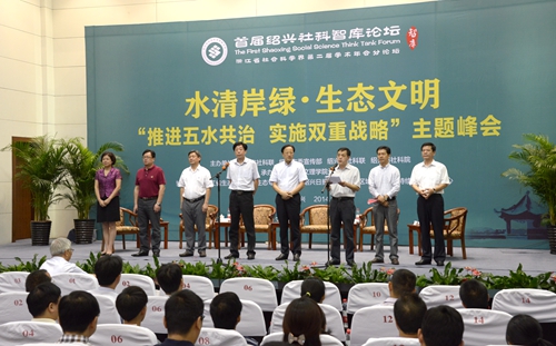 在随后进行的“水清岸绿•生态文明——推进五水共治,实施双重战略”主题峰会上,与会嘉宾就各自研究领域做主题报告:中国工程院院士、中国海水淡化与再利用学会理事长高从堦,绍兴市水利局党组书记、局长金辉,浙江大学教授、浙江省生态学会会长丁平,我校党委委员、党委宣传部、统战部部长胡保卫教授及精功集团董事局主席金良顺5位嘉宾分别作《治污先行 重在源头 贵在技术》、《直面问题 聚焦核心 重建水城》、《构建水生态 治理水环境 再造水平衡》、《公众主动参与 积极投身“水城建设”》、《节水减排 彰显企业的社会责任》的主题报告。峰会由浙江省生态学会区域生态专门委员会副理事长、元培学院生命科学系主任、教授金自学主持。