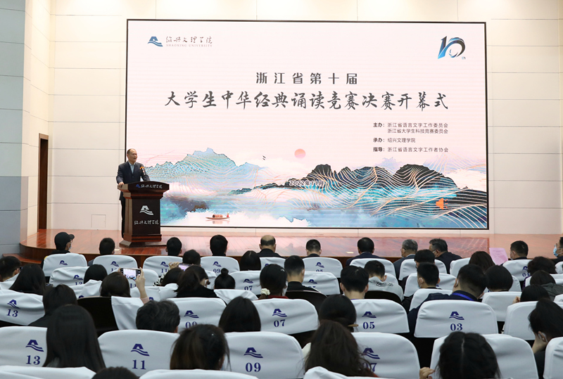 雅言传承文明,经典润育人生。11月5日,浙江省第十届大学生中华经典诵读竞赛决赛在我校开幕。浙江省教育厅领导为大赛致辞,浙江省语言文字工作者协会会长、本届竞赛组委会副主任王建华,浙江省语委办主任、本届竞赛组委会副主任朱鸿飞,副校长、校语委主任、本届竞赛组委会副主任柳国庆,浙江师范大学教授、本届竞赛专家委员会主任傅惠钧,绍兴市语委办主任、市教育局副局长丁初效,浙江省教育厅、绍兴市教育局和代表高校相关负责人,仲裁组全体专家以及来自全省84所高校的领队和选手参加决赛开幕式。
