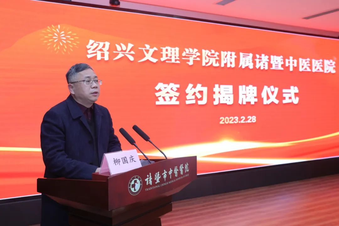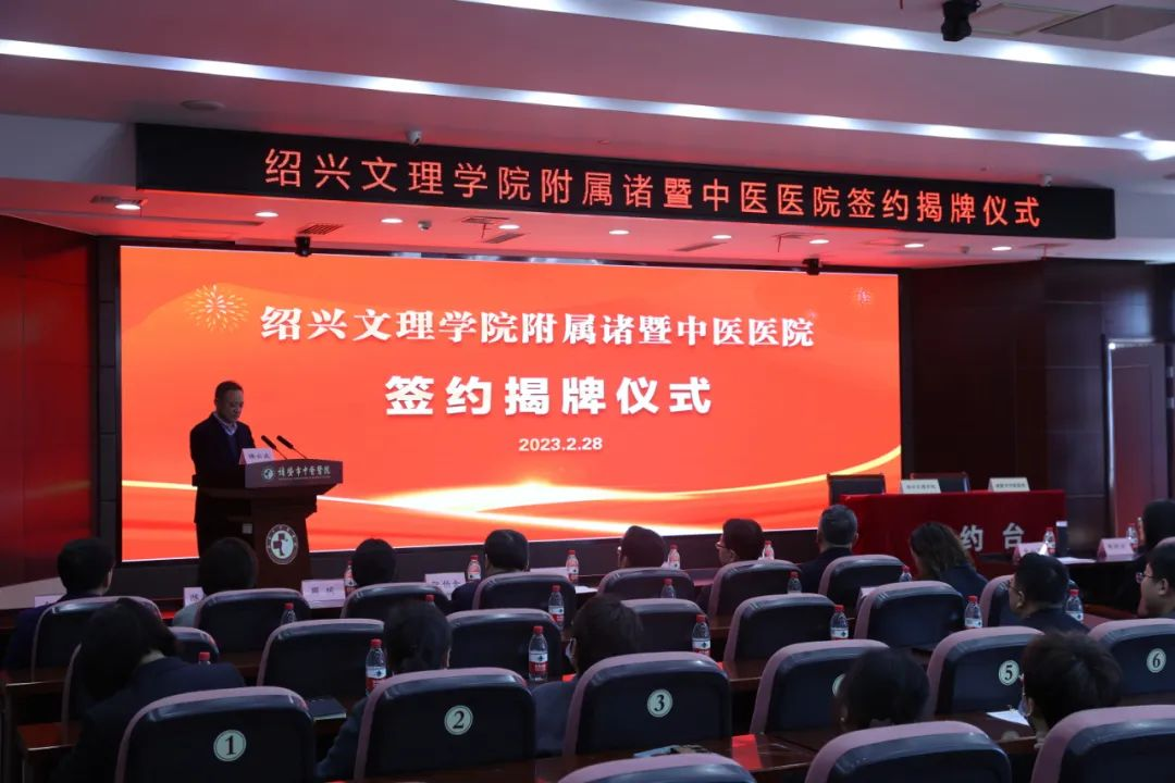 2月28日上午,我校附属诸暨中医医院签约授牌仪式在诸暨市中医医院举行。副校长柳国庆,校党委委员、医学院院长郭航远,诸暨市人民政府副市长童云英、办公室副主任寿晓东,诸暨市卫健局局长楼云成、副局长张赟华,校附属诸暨中医院党委书记周锋伟、院长戚坚永,医学院相关职能部门负责人,诸暨市卫健局各相关职能部门负责人,附属诸暨中医院其他领导班子成员、各分院执行院长及全体中层干部参加仪式。仪式由诸暨市卫生健康局党委书记、局长楼云成主持。