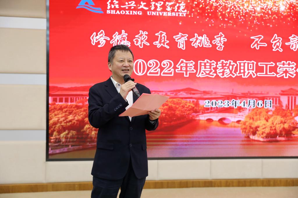 为进一步加强人文关怀,切实增强教职员工的荣誉感、归属感和幸福感,4月6日下午,学校在图书馆一楼报告厅举行2022年度教职工荣休典礼,为43名退休教职工送上真挚祝福。校党委书记汪俊昌、党委副书记沈赤、校纪委书记柯羽、副校长黄坚,相关职能部处、二级学院负责人以及荣休教职工参加活动,沈赤主持仪式。