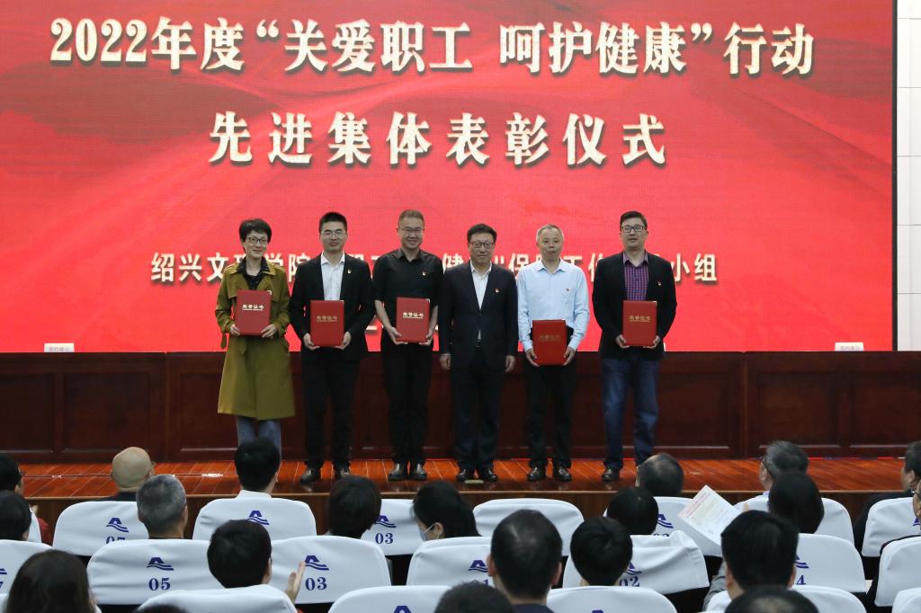 汪俊昌、黄坚为2022年度“关爱职工 呵护健康”行动先进集体颁奖。校园建设处、党委组织部、纪检监察室、国际交流合作处、资产与后勤管理处等5个部门,外国语学院、化学化工学院、生命与环境科学学院等3个学院获得2022年度“关爱职工 呵护健康”行动先进集体。机关党委书记、组织部副部长于响生宣读表彰决定。