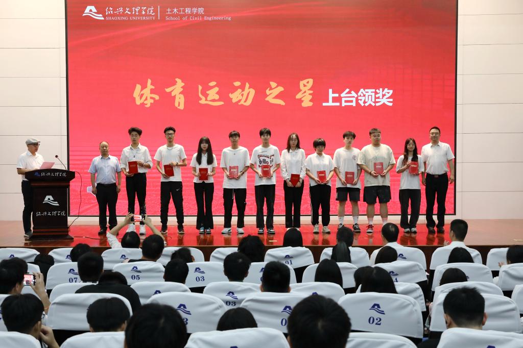 赵建明和李月红、沈赤、陈均土为获奖学生颁奖。土木工程191班谭幸淼等90多名学生分获“励志成才之星”“考研学习之星”“科研竞赛之星”“创新创业之星”“体育运动之星”及“文明寝室之星”等奖项。
