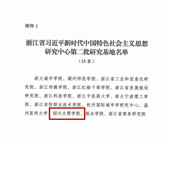 近日,经学校积极申报、省委宣传部组织专家遴选评审,浙江省习近平新时代中国特色社会主义思想研究中心公布了第二批研究基地、调研基地名单,我校获批浙江省习近平新时代中国特色社会主义思想研究中心研究基地。