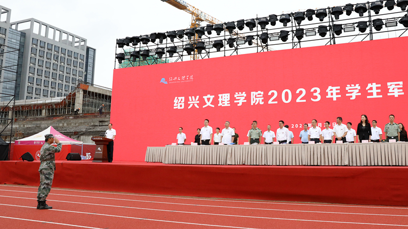 9月14日上午,我校在南山校区田径场举行2023年学生军训闭营仪式。绍兴军分区政治工作处上校主任金论川,越城区人武部中校副部长边建刚,校党委书记汪俊昌,校长赵阳,校领导沈赤、张宏、柳国庆、柯羽、陈均土,校军训领导小组全体成员,全体承训教官、参训学生参加闭营式。校党委副书记张宏主持闭营式。