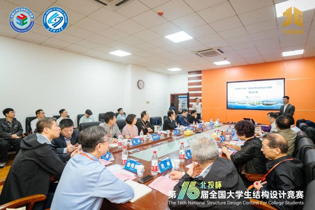 我校土木工程学院院长胡云进、教务处副处长单磊等一行8人组成的答辩小组参加了第十八届全国大学生结构设计竞赛举办权答辩。土木工程学院副院长梁超锋代表我校进行陈述答辩并接受专家组的提问答辩,最终我校以周密的承办准备、创新的赛题设计和完备的保障体系得到了一致好评,成功取得举办权。