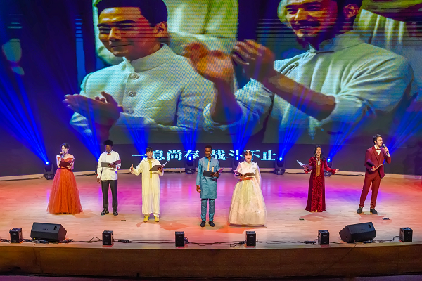 晚会在代表东方传统文化的古筝和西方现代钢琴的合奏声中拉开序幕。中外学生同台演出,传统与现代交织、东西方文化交融让整场晚会精彩纷呈,高潮迭起。晚会分“声起九州”“舞动寰宇”“月盈风泽”三个篇章,中国传统民歌、西藏锅庄舞,非洲鼓、越剧、土库曼斯坦舞蹈、摩洛哥歌舞竞相上演。在情境式诗朗诵《青春万岁》节目中,来自7个国家的青年学子向中国革命先贤致敬,用汉语精彩演绎了青春之歌,他们有着不同的文化背景,却感受着相同的青春召唤,怀揣着对美好生活的共同向往,宣告着以不懈奋斗书写青春华章的共同誓言。