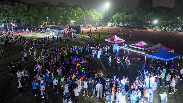 此次夜跑音乐经校团委在微信公众号征集产生。活动现场,运动、音乐、互动与表演多元融合,无论是开场时气势磅礴的舞龙表演,夜跑途中的小游戏互动环节,还是由学生社团带来的草坪音乐会、街舞表演等,都为整场活动增添了青春和律动。