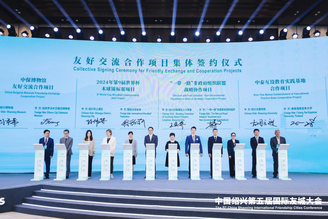 5月23日-25日,以“运河通四海 友城共未来”为主题的中国绍兴第五届国际友城大会举行,来自21个国家的32个市、友好协会、大学、驻华领事馆等机构代表团,及国内各级嘉宾300余人齐聚绍兴。我校副校长胡云进,外籍师生代表和国际交流合作处相关负责人参加大会。我校国外合作院校泰国皇家清莱大学副校长诺纳帕•丘拉苏蒂等5人代表团也应邀参加此次大会。