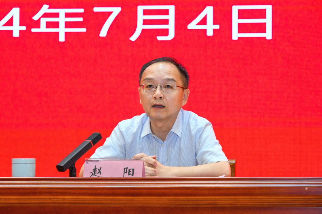 赵阳对学校上半年的工作进行了总结。他指出,暑期是全年工作安排中承前启后的阶段,也是集中精力办大事的最佳时间。全校上下要利用好暑期的时间,在适当轮休、调整状态的同时,按照学校年度重点工作和暑期工作安排,各司其职、各负其责,确保日常工作不断线、重点工作不断链。赵阳从高质量推进招生就业、审核评估和专业认证、教育教学、学科科研、人才引育、服务地方、美丽校园建设等方面对暑期工作进行全面部署。