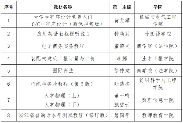 我校8种教材获评浙江省“十四五”普通高校本科规划教材