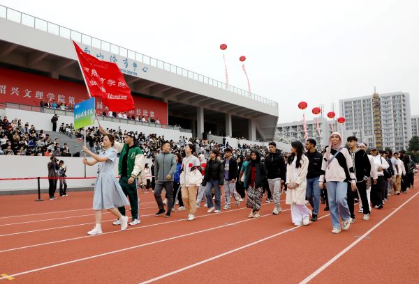 国旗、校旗、运动会会旗方阵,各学院代表方阵,体育教育专业方阵,优秀社团方阵,运动队方阵等依次入场,各方阵运动员们身着统一服装、迈着坚定昂扬的步伐,彰显出自信与活力。本届运动会有24支运动队、780余名运动健儿参加角逐,将产生男、女共计53个运动项目的金牌。