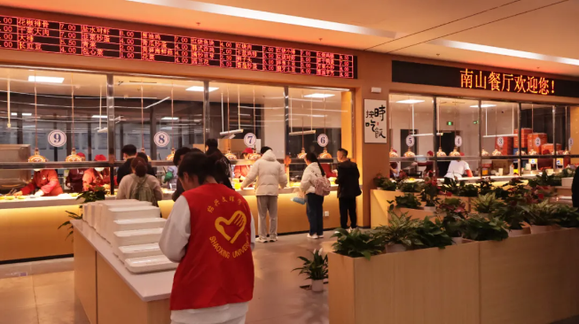 13.实施“大后勤”一体化综合改革,后勤服务提质创优。推进校园改扩建工程,完成投资3.55亿元。南山校区新餐厅目前已完成一期建设,建筑面积达7000余平米,引进六台智能化结算台,添置自动餐盘回收设备,二层苏州蓝天美食城可同时容纳900人就餐。正式启用的南山体育中心创新性采用完整的地景平台起坡设计,拥有笼式羽毛球场、篮球场、排球场、室外网球场、六人制足球场、室内乒乓球馆、舞蹈房、游泳馆、健身房、室外田径场等,充分满足师生运动需求。