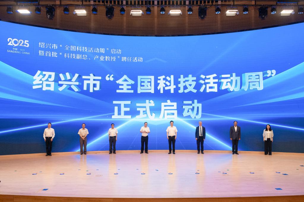 谢国民、崔凤军、王永明、阿里·嘉法理、李东阳、王文生、王国飙、娄丹丹共同启动绍兴市“全国科技活动周”。