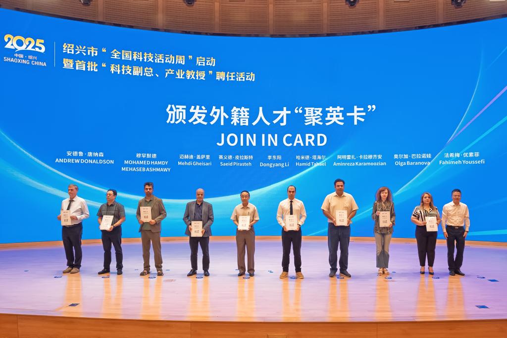 王国飙向9位外籍人才代表颁发“聚英卡”