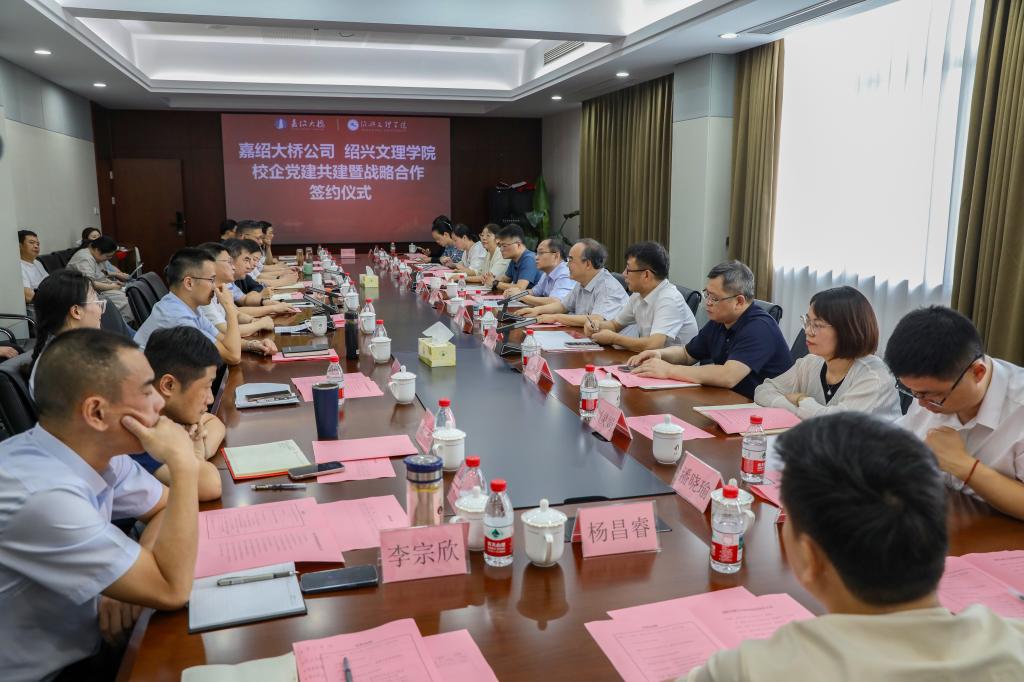 校长赵阳,校党委副书记黄坚,浙江嘉绍跨江大桥投资发展有限公司党委书记、董事长陈富根,公司党委副书记、副董事长、总经理何苗及公司高管,校宣传部、科学技术处、地方合作处、校团委、马克思主义学院、土木工程学院等相关负责人及教师代表参加会议。签约仪式由浙江嘉绍跨江大桥投资发展有限公司副总经理王樟轩主持。