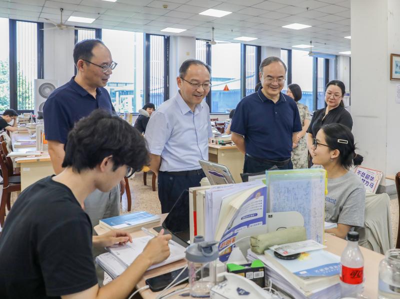 8月19日,校长赵阳、党委副书记黄坚看望慰问暑期留校考研复习学生,办公室、学工部、图书馆等职能部处负责人陪同走访。