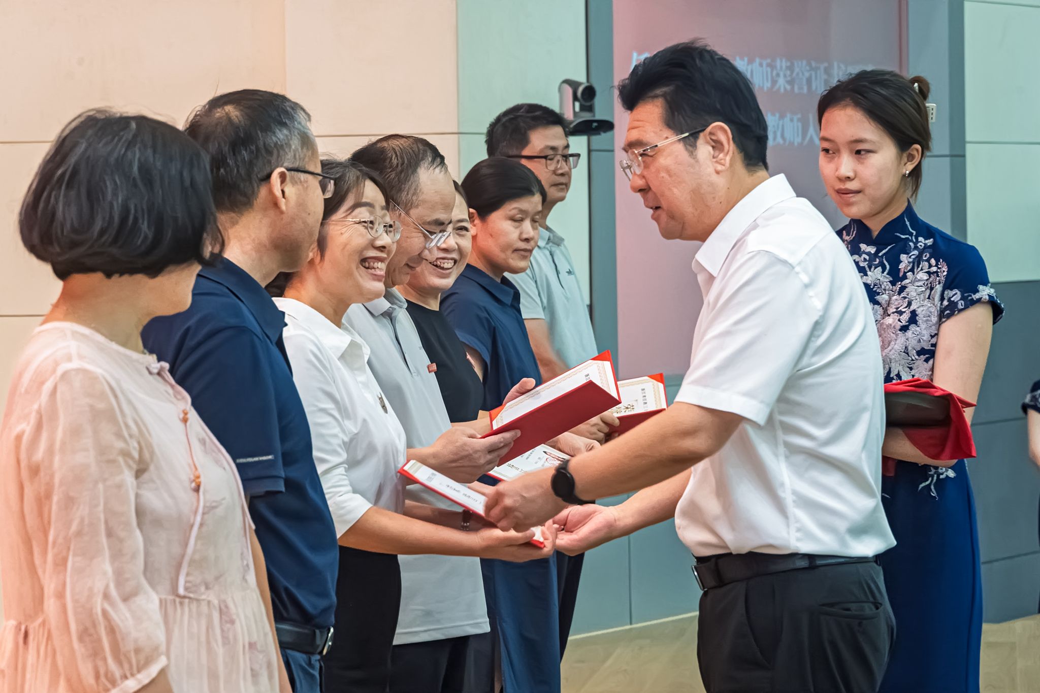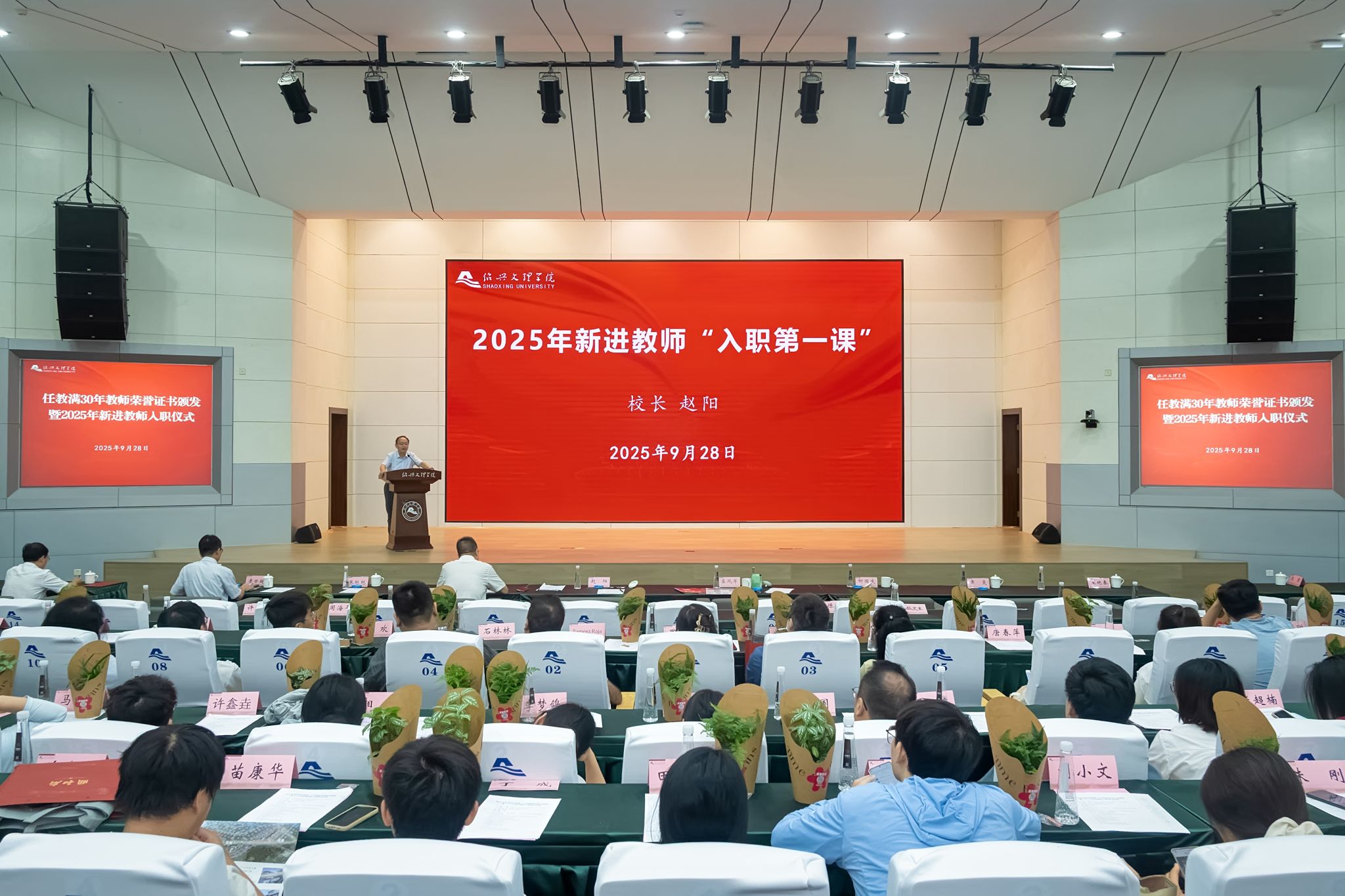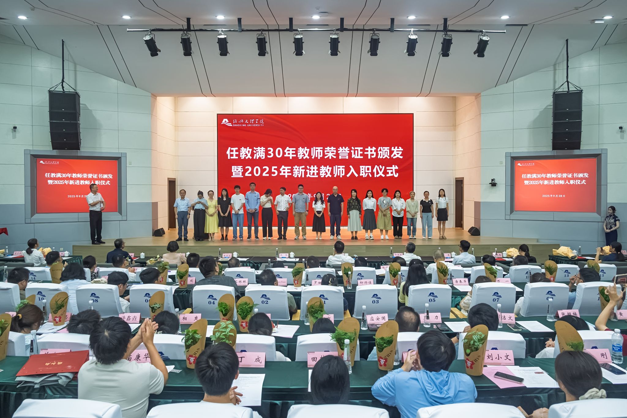 9月28日下午,学校在铁城科教馆一楼报告厅举行任教满30年教师荣誉证书颁发暨2025年新进教师入职仪式。校党委书记崔凤军,校长赵阳,校党政领导班子成员柳国庆、陈均土、黄曼等出席活动。副校长陈均土主持会议。