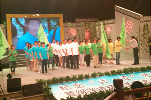 2014年,绍兴市领导为环境科学专业师生重要参与的环保志愿者协会授旗