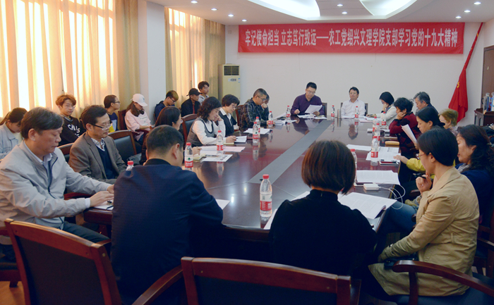11月9日,我校农工党支部以“牢记使命担当,立志笃行致远”为主题,组织学习党的十九大精神。农工党支部成员以及其他民主党派、统战团体代表共同参与学习。校党委副书记沈赤,校党委委员、统战部部长陈均土参加会议。