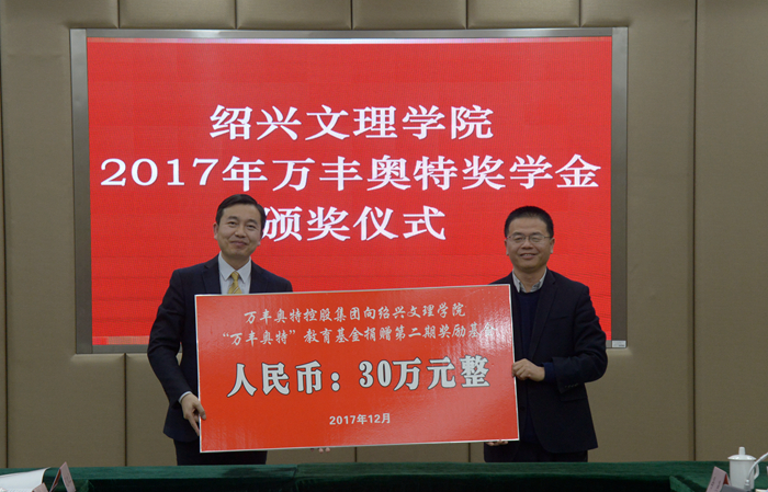 寿永明表示,万丰奥特控股集团在我校设立奖学金,点燃了同学们对世界,对未来的热情和渴望,帮助同学们在国际交流中丰富知识、开拓视野。他说,学校一定会用好、管好基金,以学生的成长进步和为社会培养更多人才回馈万丰奥特控股集团公司对学校的关心和支持。
